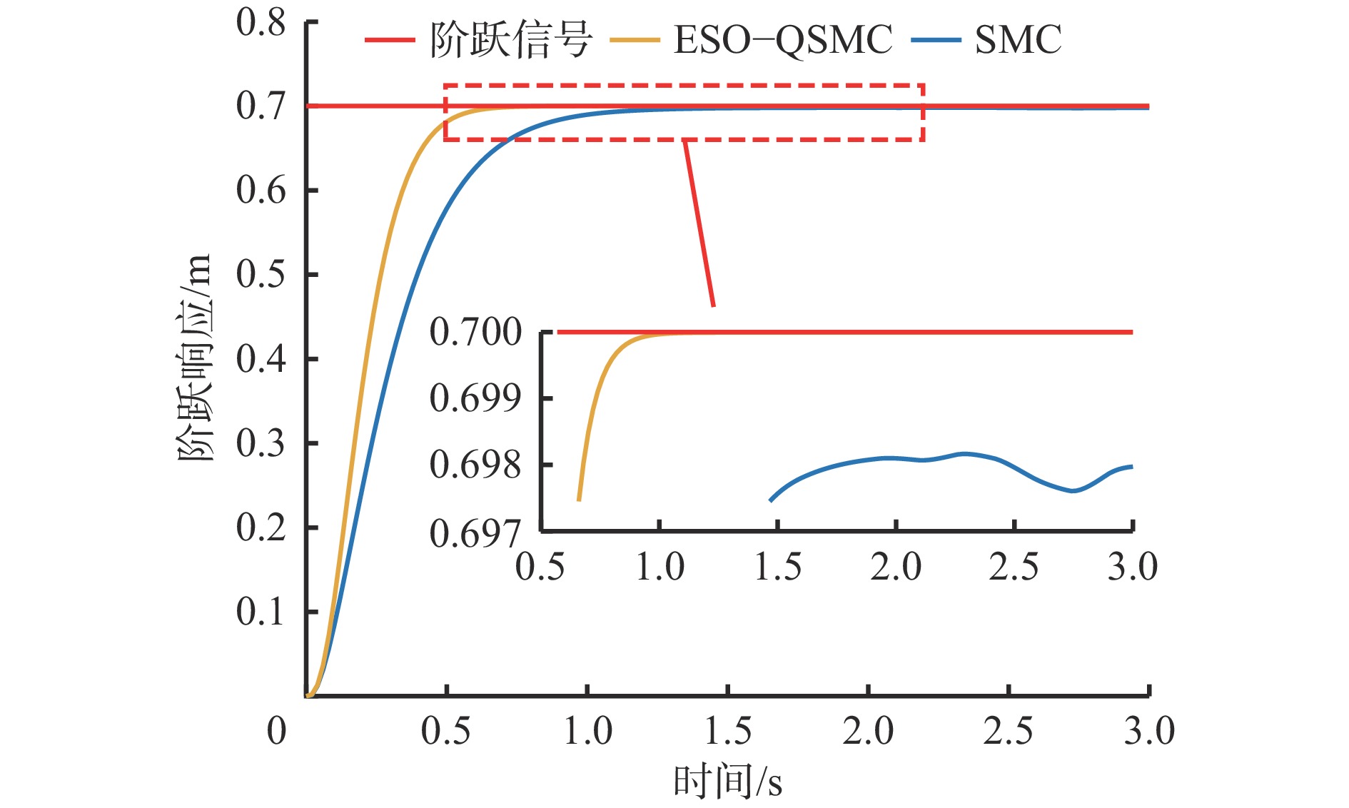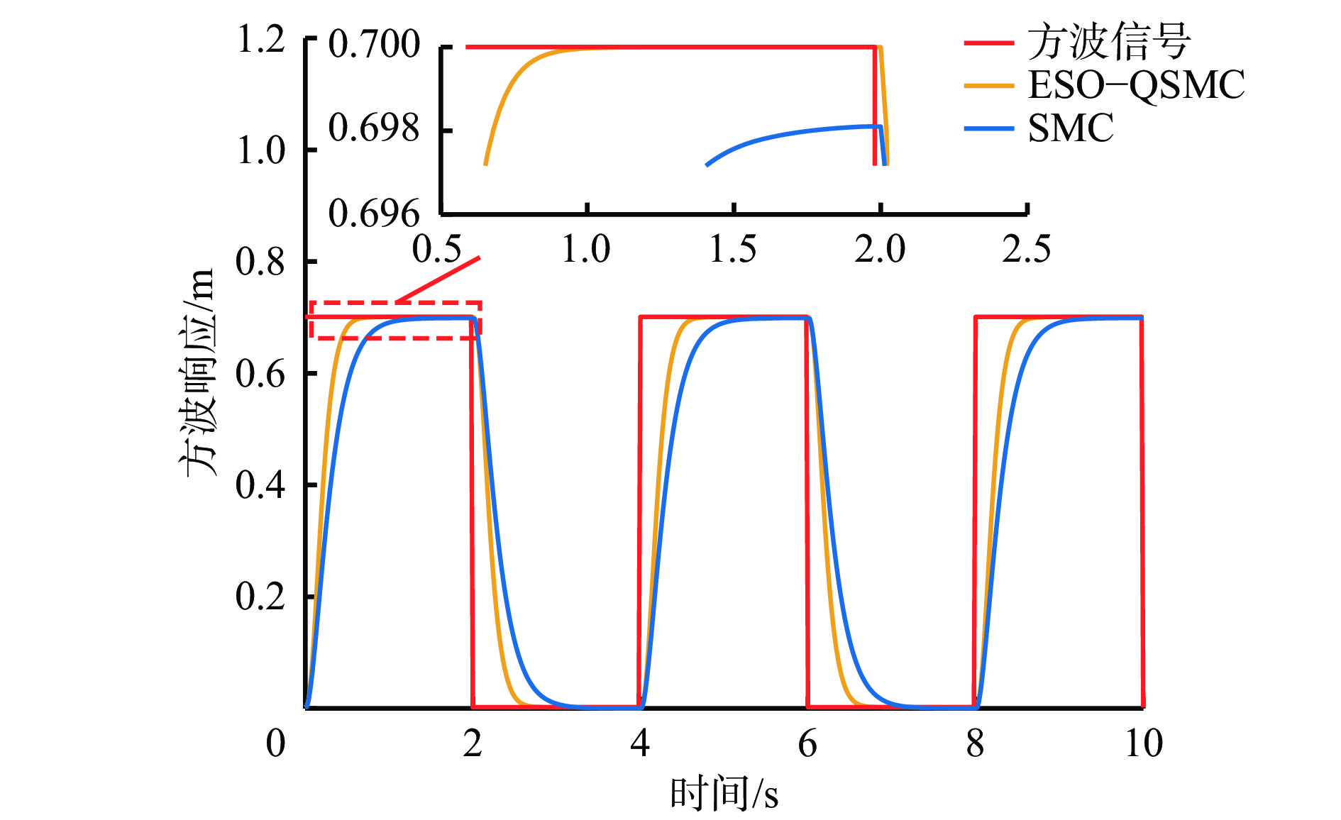 • 摘要: 液压支架推移系统的控制精度直接影响综采工作面直线度。目前液压支架推移系统位置控制算法普遍存在状态感知维度单一、动态扰动耦合复杂等问题,导致控制算法的实际效果受限,特别是移架过程中的非线性摩擦效应与未建模动态特性,进一步加剧了系统控制偏差的累积效应。针对上述问题,提出了一种基于准滑动模态的液压支架推移系统高精度位置控制方法。首先,建立了融合液压缸动力学、流量特性及扰动耦合的非线性模型,提出了“双幂次趋近律−新型饱和函数”协同框架,解决传统滑模控制(SMC)中快速收敛与抖振抑制的矛盾。其次,设计了一种基于扩张状态观测器(ESO)的准滑动模态控制器(QSMC),该控制器引入ESO估计液压支架推移系统未建模动态和外部扰动,采用非线性反馈饱和函数加快系统状态收敛,有效抑制SMC固有的抖振现象。仿真结果表明:相比传统SMC,所提方法在阶跃响应中稳态时间缩短至1.1 s,降幅为47.6%,稳态误差趋近于零;在正弦响应中,0.2 s即可实现稳定跟踪,峰值误差为0.001 m,减小了94.7%,且具备更宽的频带特性;在方波输入下所提方法实现了平滑切换,鲁棒性更强。