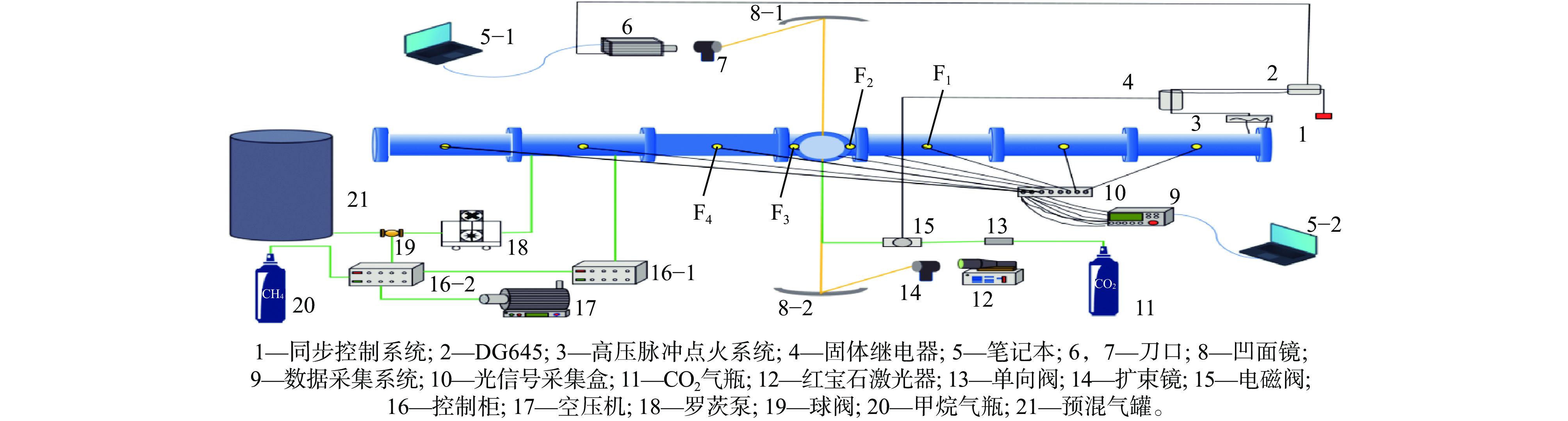 2 under different injection pressures, nozzle layouts, and control sequences, through a combination of theoretical analysis, experimental research, and numerical simulation. Experiments were conducted using a self-built medium-scale explosion shock tube system, combined with flame sensors and spectroscopy techniques to capture flame characteristic parameters and typical evolution patterns of free radicals. A chemical kinetic model of methane explosion was developed based on CHEMKIN-PRO software to qualitatively and quantitatively analyze the inhibitory effects of CO
