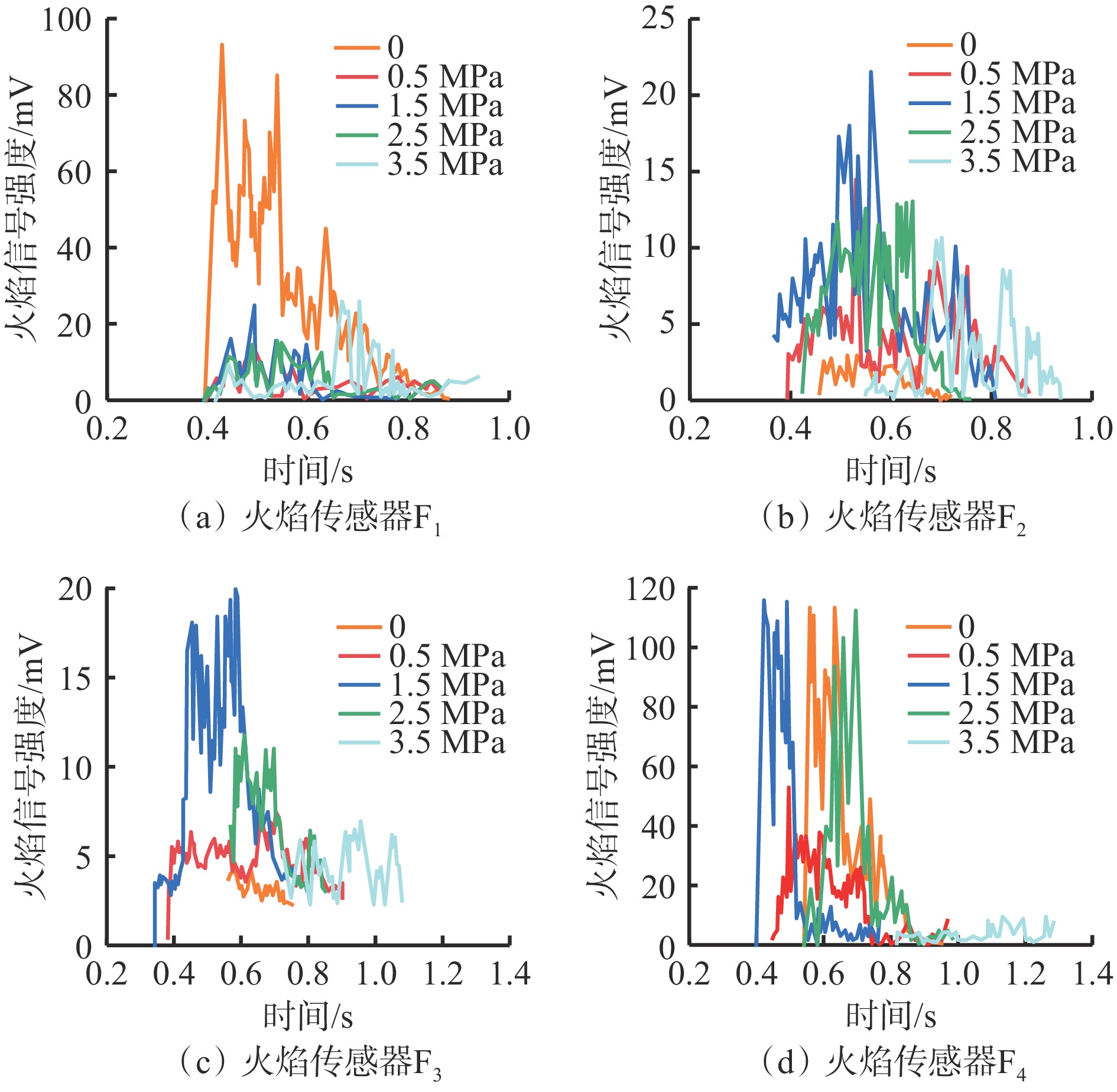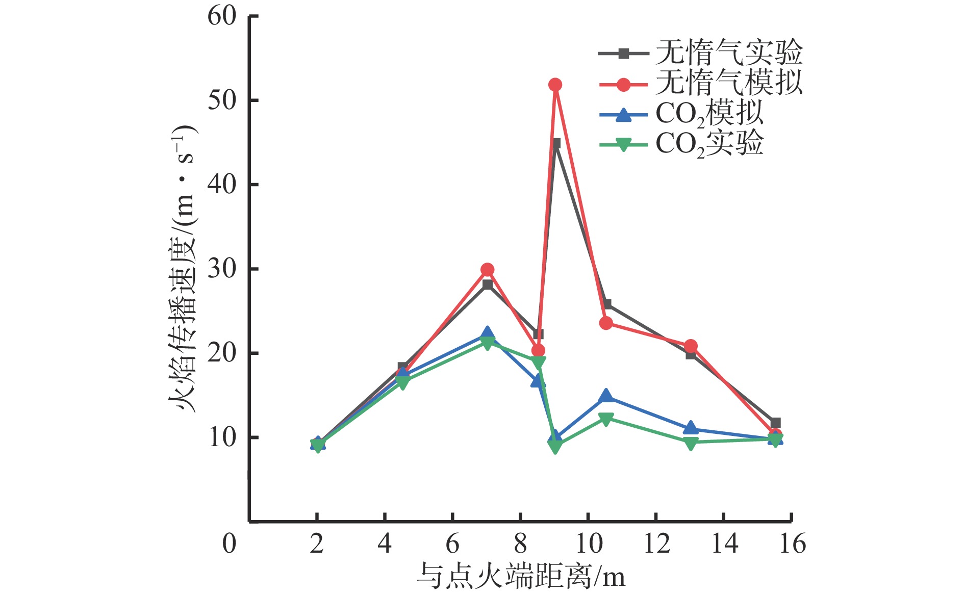 3/s, the maximum reduction in flame propagation speed reached 79.3%. The flame signal intensity showed a notable decrease, and the molar fraction of ·OH radicals decreased by 14.7%. The local turbulence intensity peak (about 20%) formed by high-pressure injection significantly improved CO