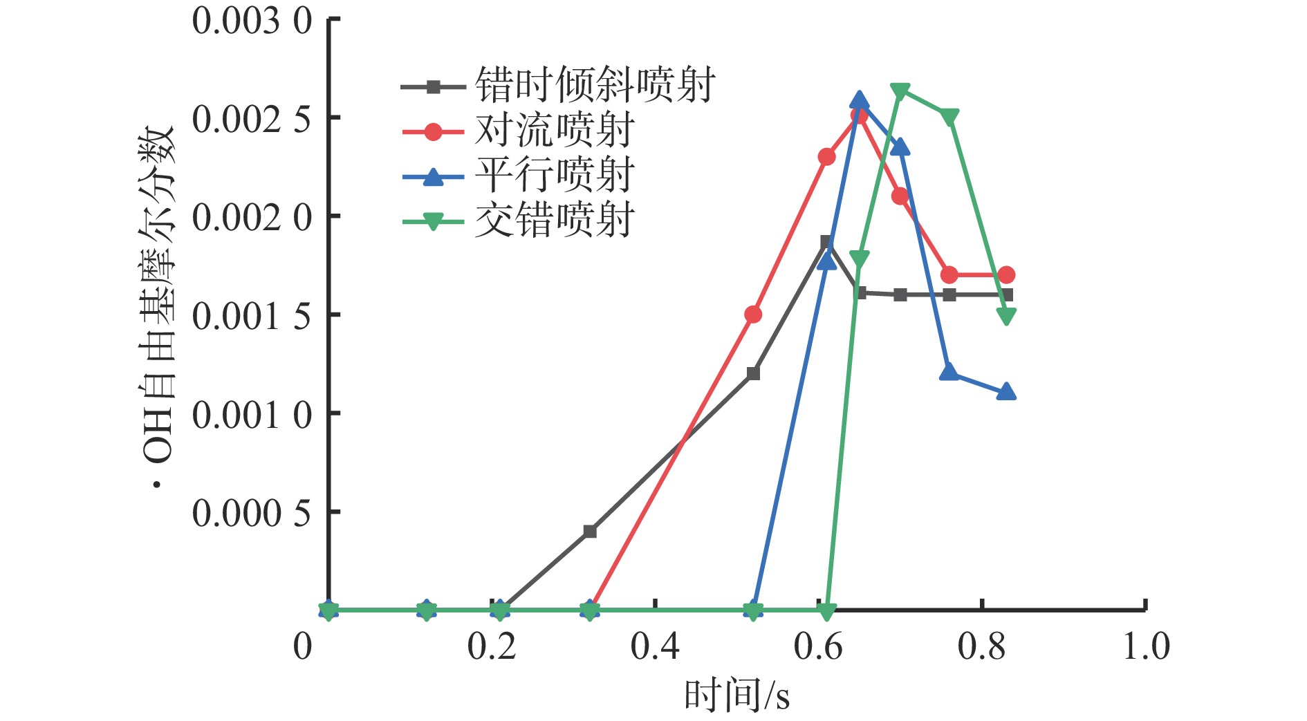 2 diffusion efficiency and enhanced suppression effects. The dual-nozzle staggered inclined injection strategy achieved the best effect. By employing a spatiotemporal coupling design, it simultaneously controlled both the injection quantity and timing of the suppressant. This approach established a triple barrier of "physical dilution–chemical inhibition–dynamic interception," resulting in a 47.64% reduction in the molar fraction of ·OH radicals, significantly outperforming traditional single-nozzle and other dual-nozzle schemes.