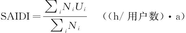 式中:Ni,λi分别为负荷节点i的总用户数量和故障率;Ui为节点i的等值年平均停电时间,h;Lb(i)为停电节点的平均负荷,kW;EFF为包括所有停电节点的集合;Nj为停电节点j的总用户数。