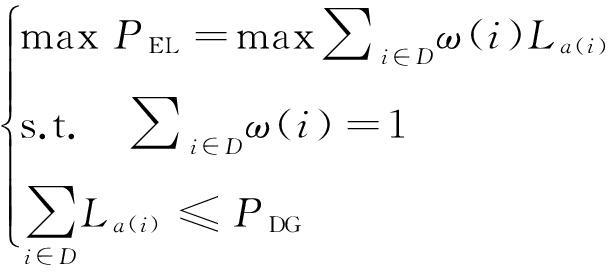 式中:i为负荷点的标号;D为孤岛的负荷所组成的区域;ω(i)为i点的负荷权重系数;La(i)为i点的负荷大小;PDG为分布式电源的等值额定容量。