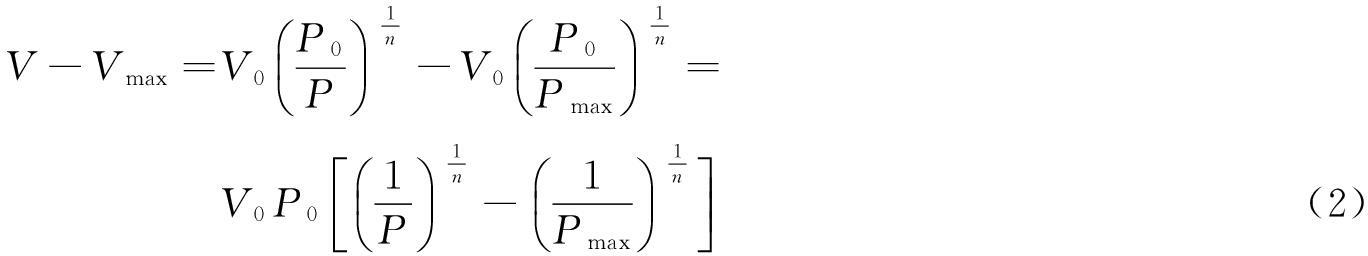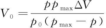 V-Vmax为蓄能器有效工作排量,令V-Vmax=ΔV,则对于等温过程,蓄能器总容积为