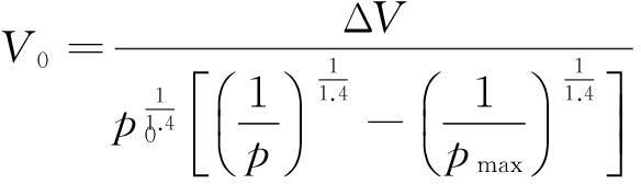 利用式(4)、式(5)计算蓄能器总容积时,需确定p0,p,pmax和ΔV的数值。