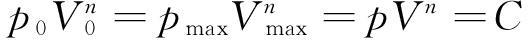 式中:p0为供油前充气压力;V0为蓄能器的总容积;n表示多变指数;pmax为最高工作压力;Vmax为最高压力时的气体容积; p为工作压力;V为压力为p时的气体容积;C为常数。
