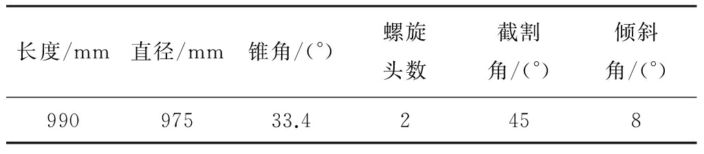 截割头的主要参数包括截割头的长度、直径、锥角、螺旋叶片的头数与截齿数量等。掘进机截割头的结构参数见表3,本文根据该组参数建立截割头的有限元模型。煤岩模型采用有限体积的长方体代替,在其不被截割表面添加无反射边界条件,可以模拟无限大体积的煤岩,分析过程中煤岩和截割头均选用SOLID164单元。