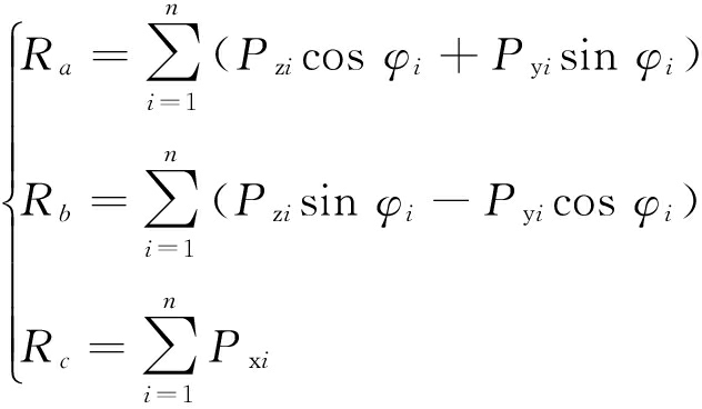 根据单个截齿的受力计算,将截割头任意时刻参与截割的各截齿受力合成,可求得截割头所受载荷的理论值。