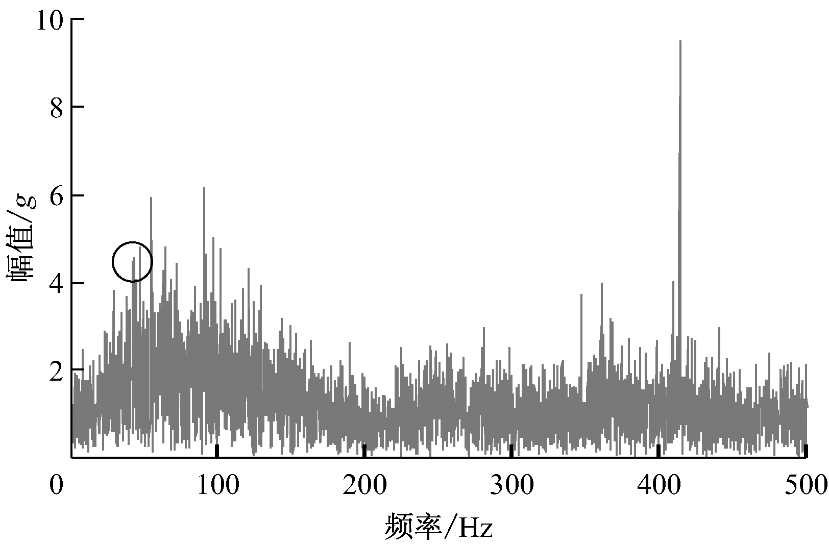 对信号进行频谱分析,能将信号从时域分析转换到频域分析,可以看到信号在不同频率下幅值的变化情况。当幅值突然增大时,说明在此频段处信号的能量值大,即表现出明显的特征。在小波包分解时,要将谱峰出现的频段与其他频段分开,这样才能完整地提取出信号特征。小波包分解层数直接决定了信号分解频带的大小,根据信号频谱谱峰出现的频段,可以推算出小波包分解层数,使信号特征量完全展现出来。
