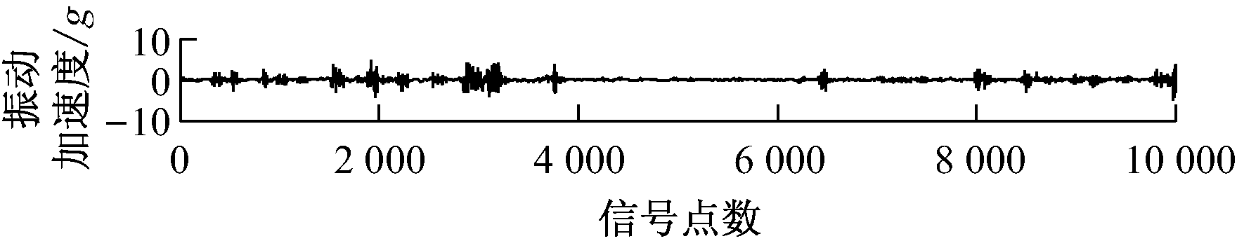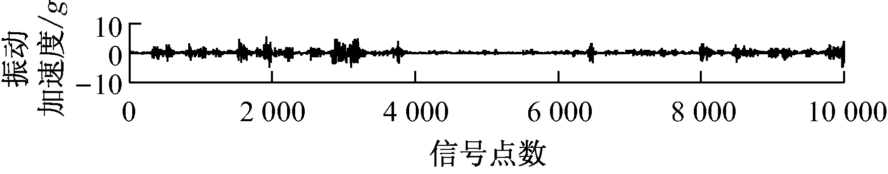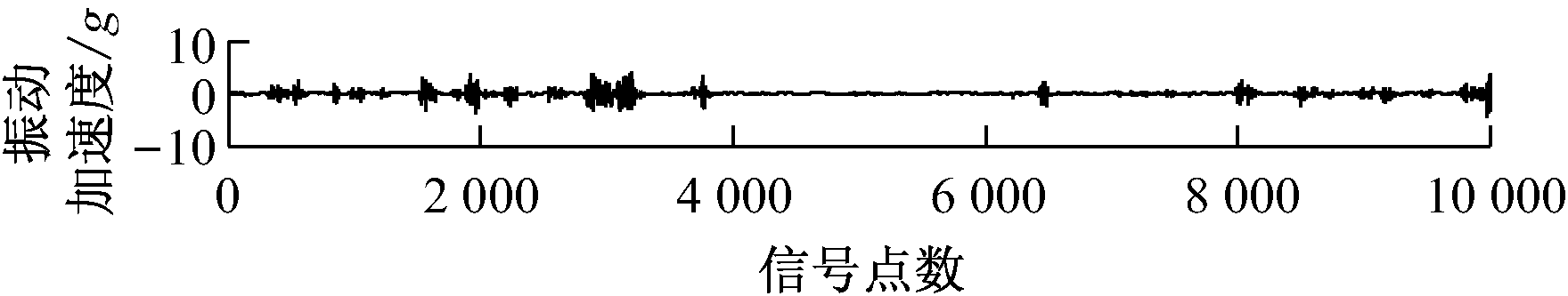 试验中使用的掘进机是总功率为650 kW的横轴式超重型岩巷掘进机,该掘进机可截割100 MPa以内的岩石,局部硬度可以达到120 MPa。试验过程中,通过振动传感器与动态信号分析仪对超重型岩巷掘进机截割头振动信号进行采集,信号的采样频率为10 kHz。