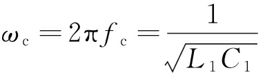 当通信载波频率fc确定后,调节C1,使发射电路达到谐振状态,此时发射回路电流i1(t)达到最大值,载波角频率ωc满足式(2)要求。