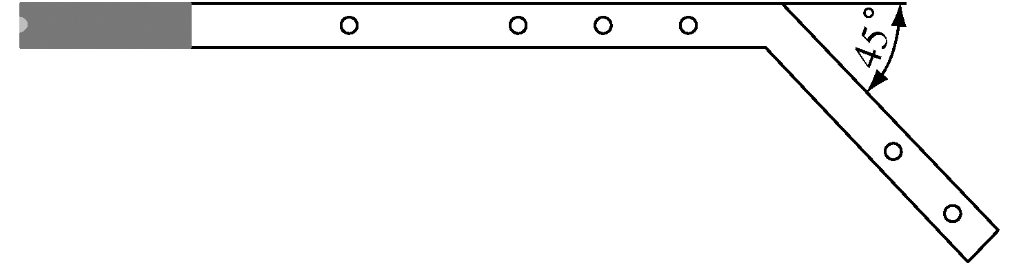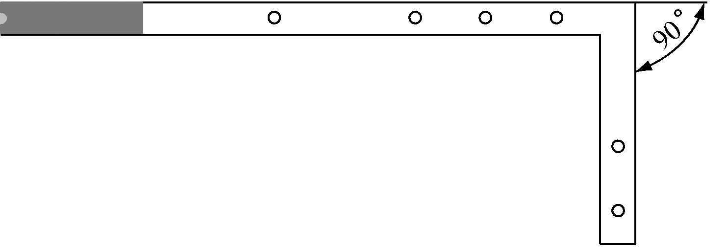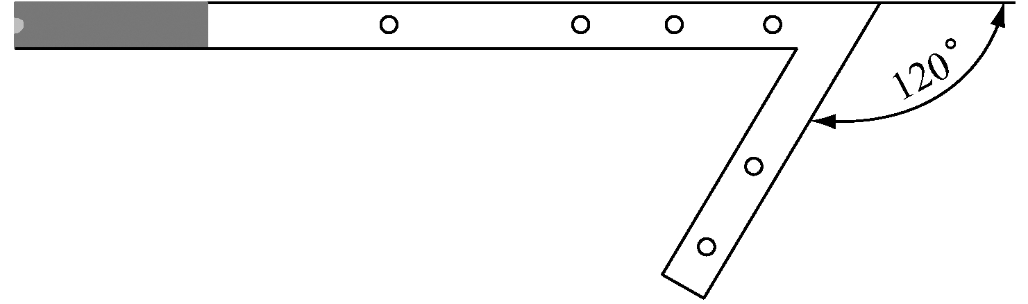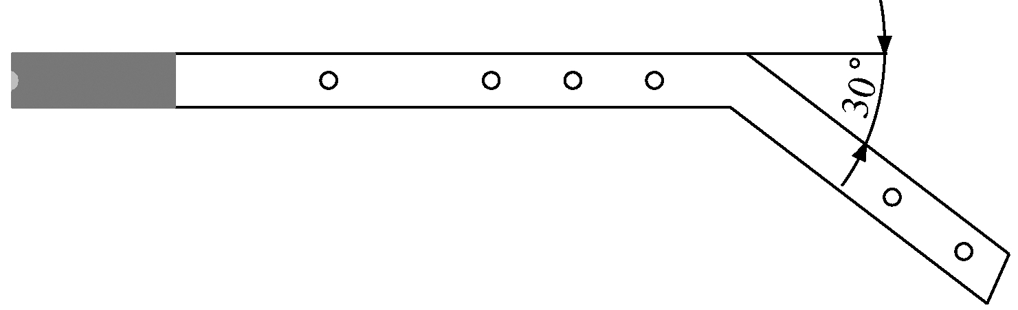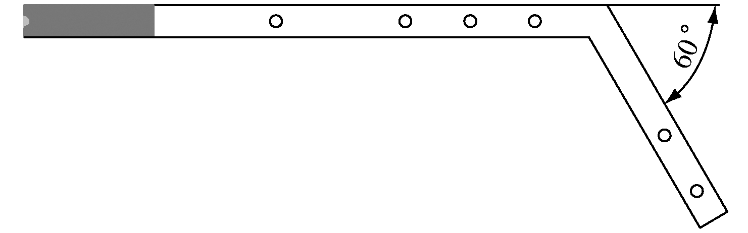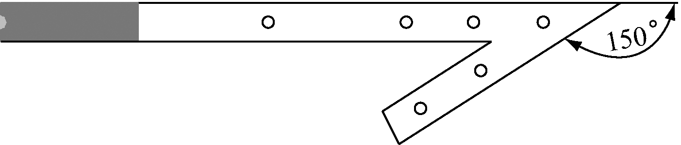 瓦斯爆炸传播管道选取80 mm×80 mm的方形管道。实验所配瓦斯浓度为理论上最强烈的爆炸浓度9.5%。实验管道由瓦斯填充管道与火焰传播管道连接而成。瓦斯填充管道长度为4,5,6 m;火焰传播管道总长11 m,由长10 m的水平部分与长1 m的拐弯部分无缝焊接而成,管道长径比保持不变,有30°,45°,60°,90°,120°,135°,150°共7种拐弯角度。实验管道布置如图2所示。