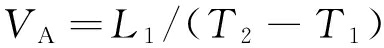 式中:L1为测点1、测点2的间距;T1为火焰到达测点1的时间;T2为火焰到达测点2的时间。