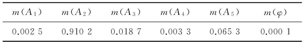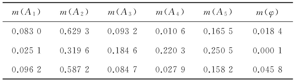 根据式(4)、式(5),依次对X,Y,Z 3个方向振动子网进行概率分配,结果见表4,其中m(φ)为不确定度。
