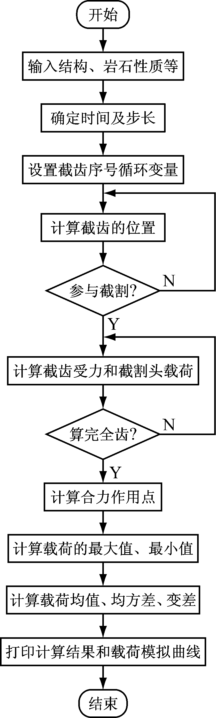 图4 掘进机纵向钻进时截割头载荷模拟程序流程