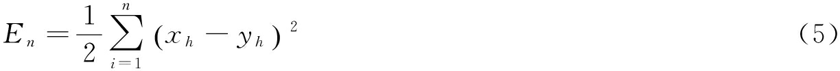 式中:Ai 为待识别的硬度等级,i=1,2,…,n;y(Ai)为RBF网络输出节点的输出;En为RBF神经网络的样本误差;xh,yh分别为第h个神经元的期望值和实际值。