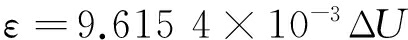 为了减少环境因素的干扰,另接一个电阻应变片作为补偿。应变放大器的放大倍数为100倍,电阻应变片的灵敏系数K=2.08,惠斯顿电桥电路的恒定电压E为2 V。实验开始前,将应变放大器所接通道全部归零。根据惠斯特电桥电路可得应变ε与输出电压ΔU的关系为