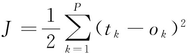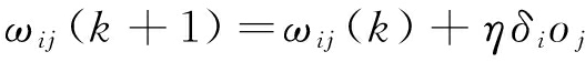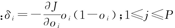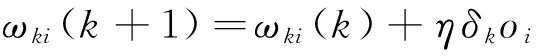 式中:η为学习率;δk=(tk-ok)ok(1-ok);1≤i≤P。