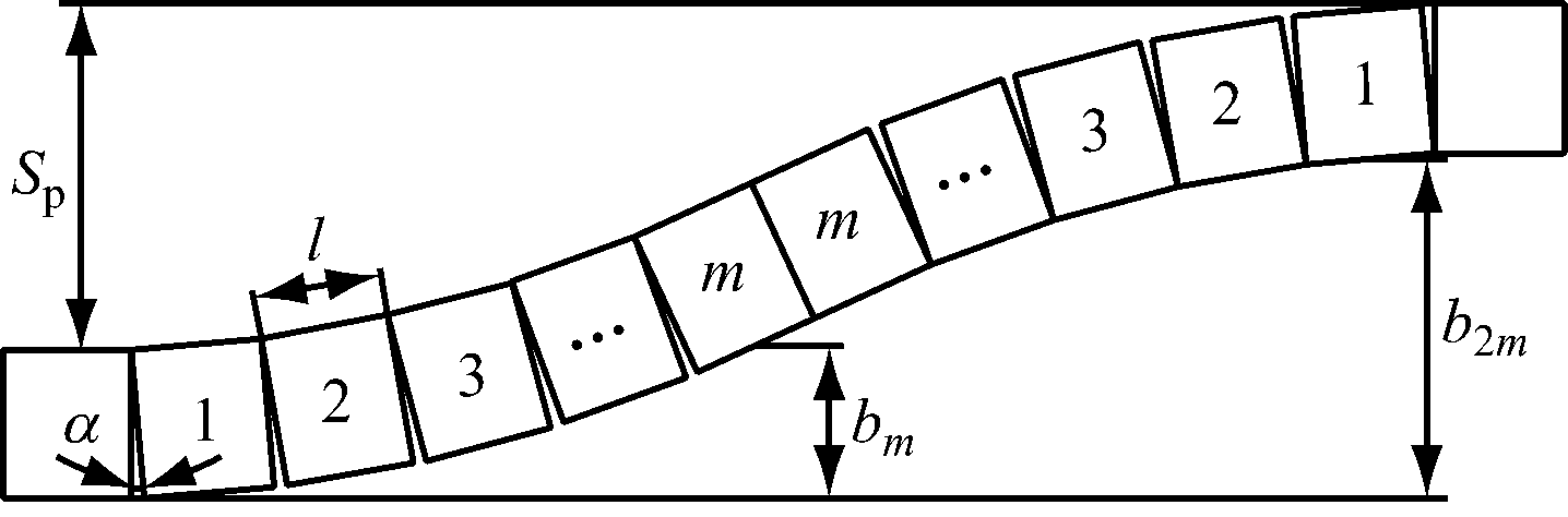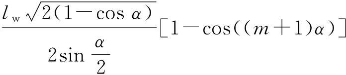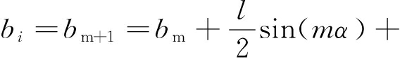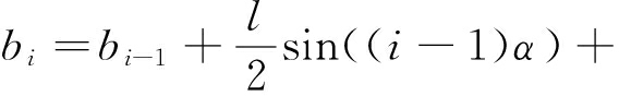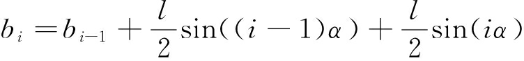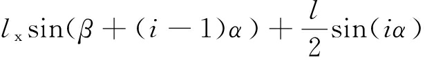 图3中经过几何计算可得弯曲段溜槽间水平转角α对应的弦长为