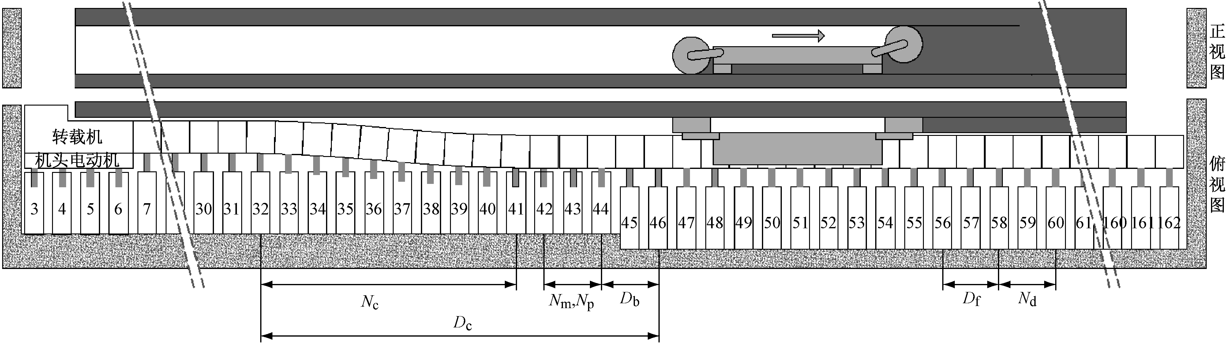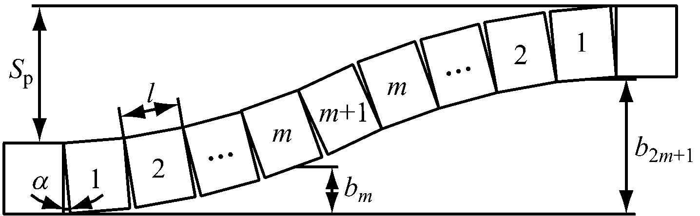 每节溜槽的推移距离bi(i=1,2,…,Nc)计算公式如下。