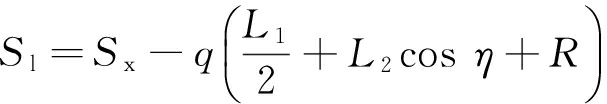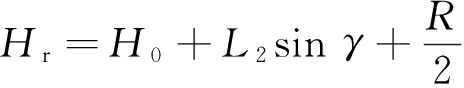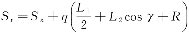 式中:q为采煤机牵引方向(q=1表示采煤机向右牵引,q=-1表示采煤机向左牵引);L1为采煤机回转中心距,m;L2为摇臂长度,m;γ为右滚筒相对于机身转过的角度(当滚筒中心处于回转中心线以上时,γ>0),°;R为滚筒半径,m。