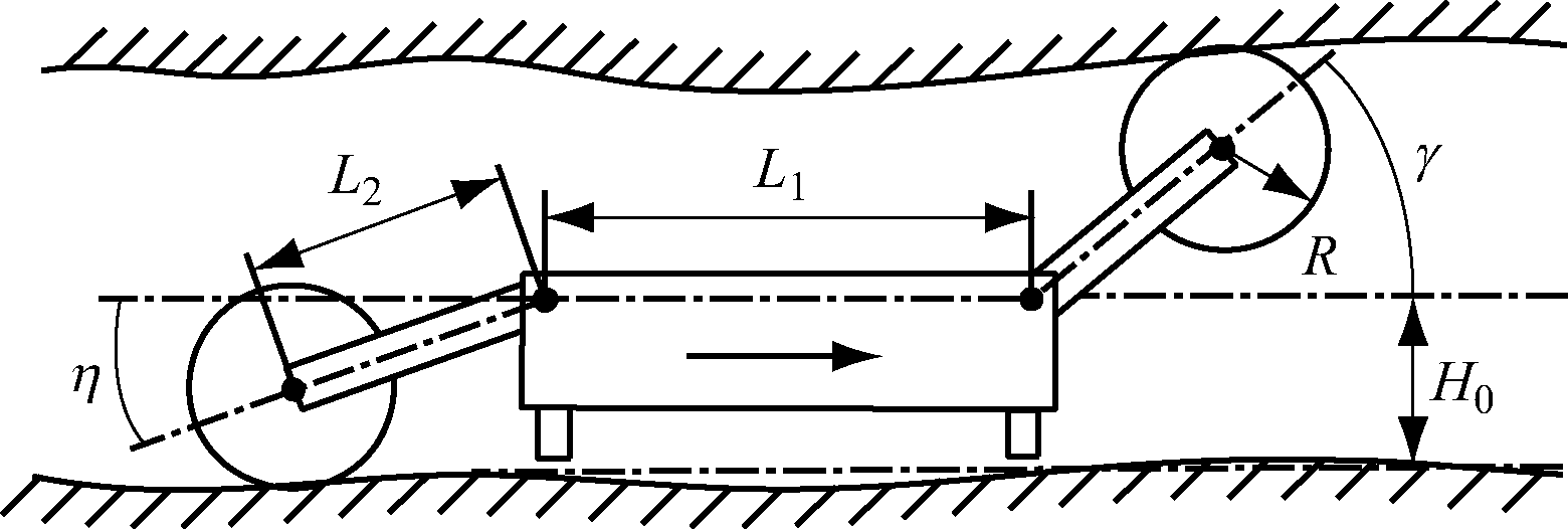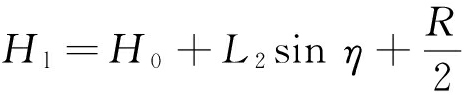 式中η为左滚筒相对于机身转过的角度(当滚筒中心处于回转中心线以上时,η>0),°。