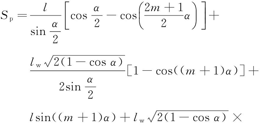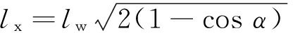 式中:l为每节溜槽的长度,m;α为溜槽间的水平转角,°;lw为每节溜槽的宽度,m。