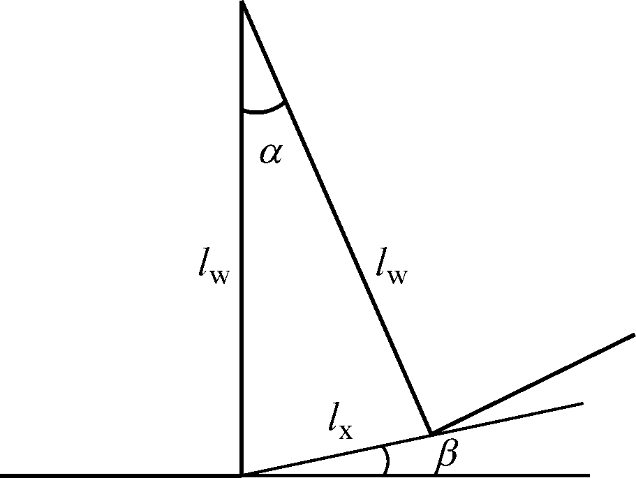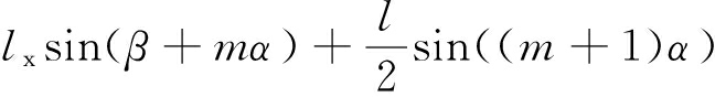 式中:lx为溜槽间水平转角α对应的弦长,m;β为弦所对应的转角,°。