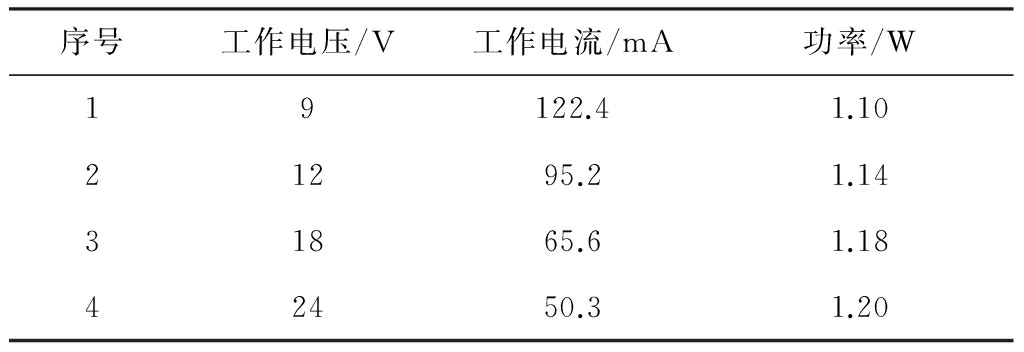 矿用监控系统中传感器的工作电压范围为9~24 V,一旦传感器的输入电压低于9 V,传感器将不能正常工作。瓦斯传感器在不同供电电压下的功耗情况见表1。