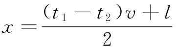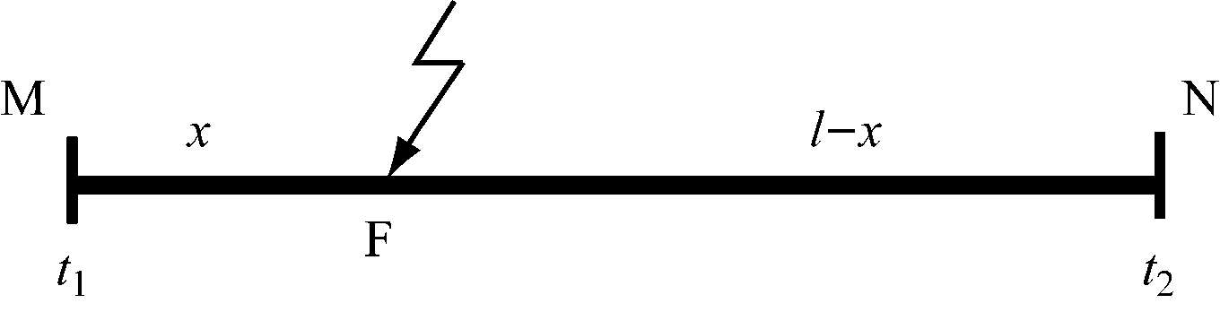图1中,F为故障点,t1,t2分别为故障行波到达M端和N端的时间,l为电缆全长,x为M端与故障点距离。设v为行波波速,则电缆故障测距方程为