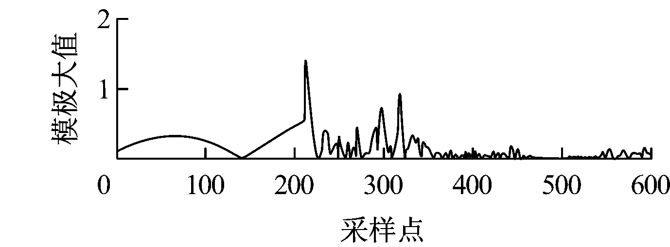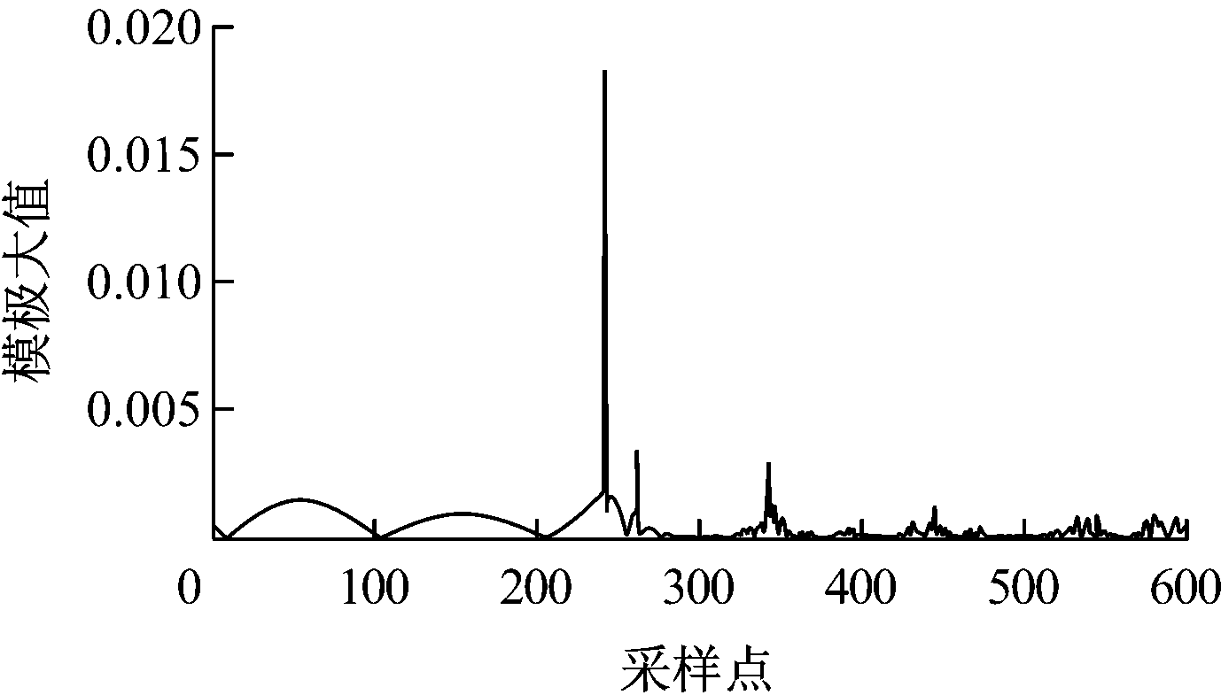 电缆发生故障时产生广域频带的暂态信号,故障行波含有丰富的高频分量;不同模量、不同频率的行波信号传播速度不一,导致行波波头在传播过程中发生畸变,影响波头的精确标定。本文采用色散较小的行波线模分量进行行波波头检测[13]。