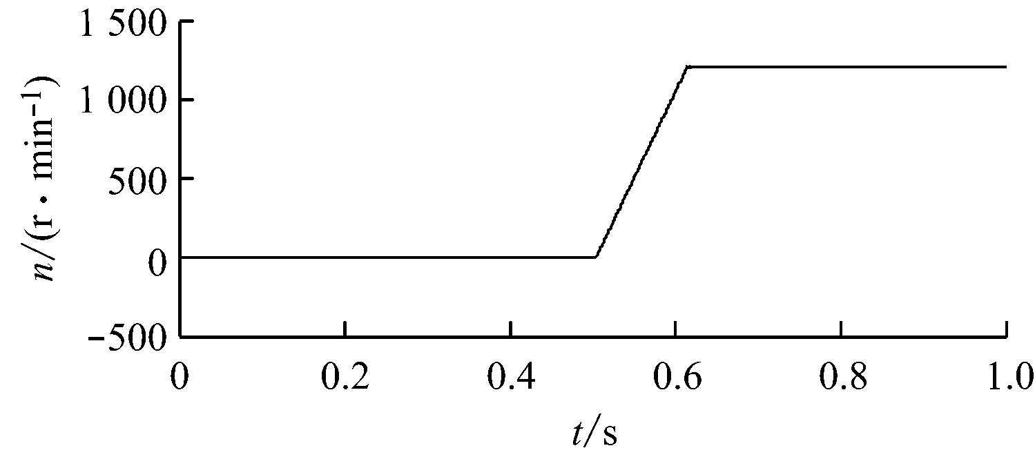 以图9所示的电动机停机状态为例,在该状态下投入应急变频装置后的电动机输出电流和转速曲线如图10所示。从图10可看出,应急变频装置开始时处于封锁状态,电动机处于停机状态,输出电流为0;0.5 s时开始启动电动机并接入应急变频装置,电动机转速缓慢上升,直至达到额定转速;电动机输出电流由开始较大的启动电流过渡到稳定运行状态下的电流,说明煤矿电动机应急变频调速系统具有快速响应能力。