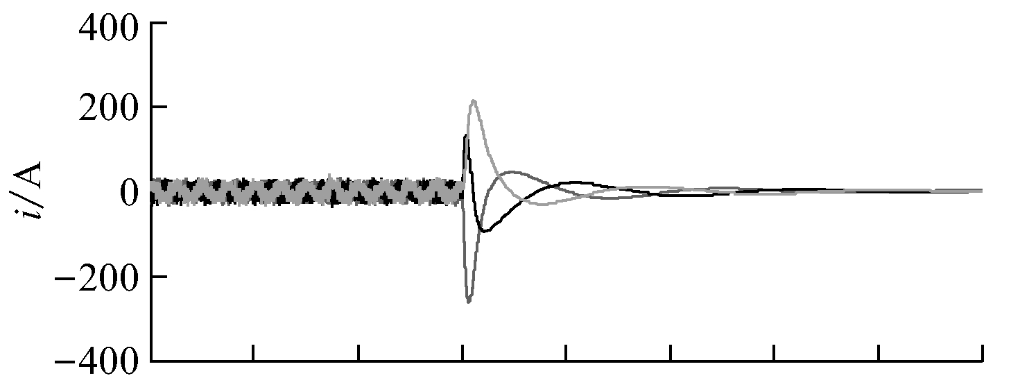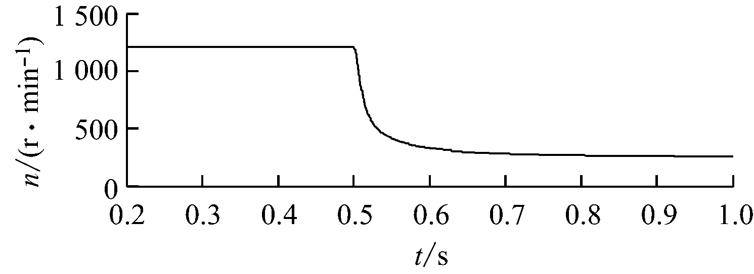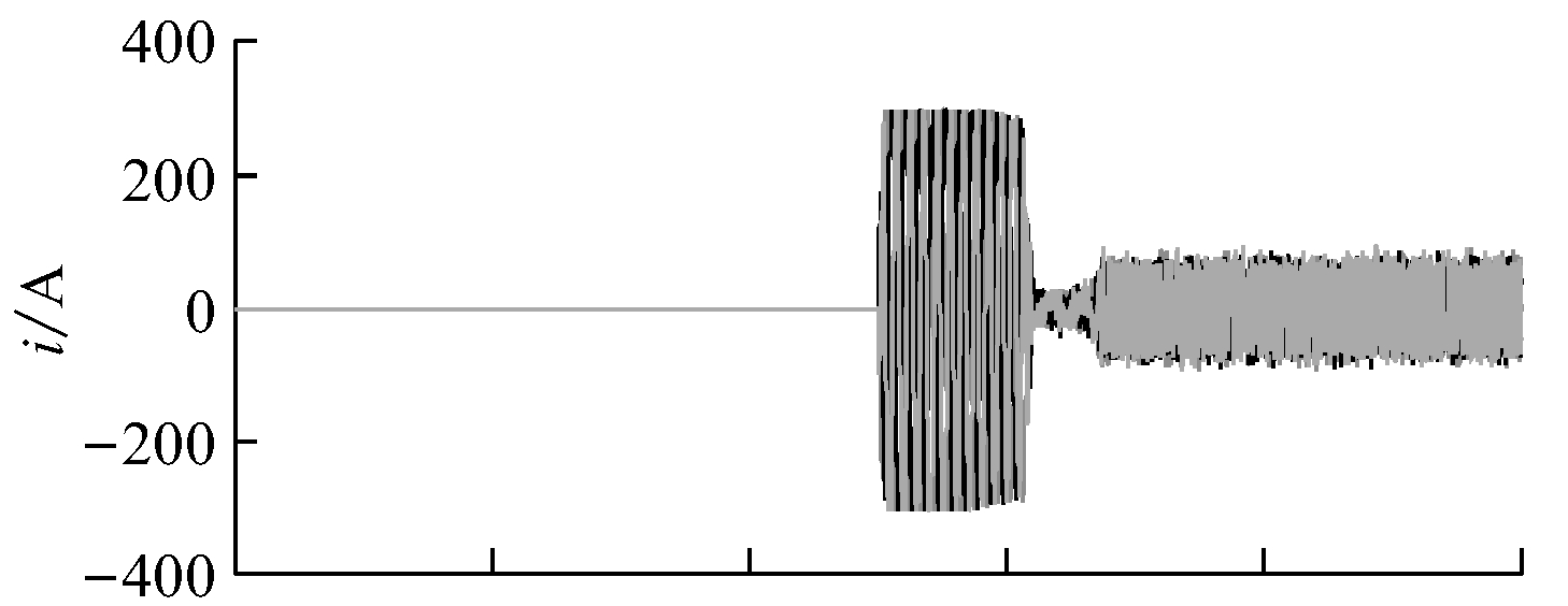 原变频器在0.5 s时发生故障情况下的电动机输出电流i和转速n曲线如图9所示。从图9可看出,原变频器故障前,电动机的电流和转速都处于稳定运行状态;发生故障时,电动机电流降为0,转速也逐渐下降 ,直至电动机处于停机状态。