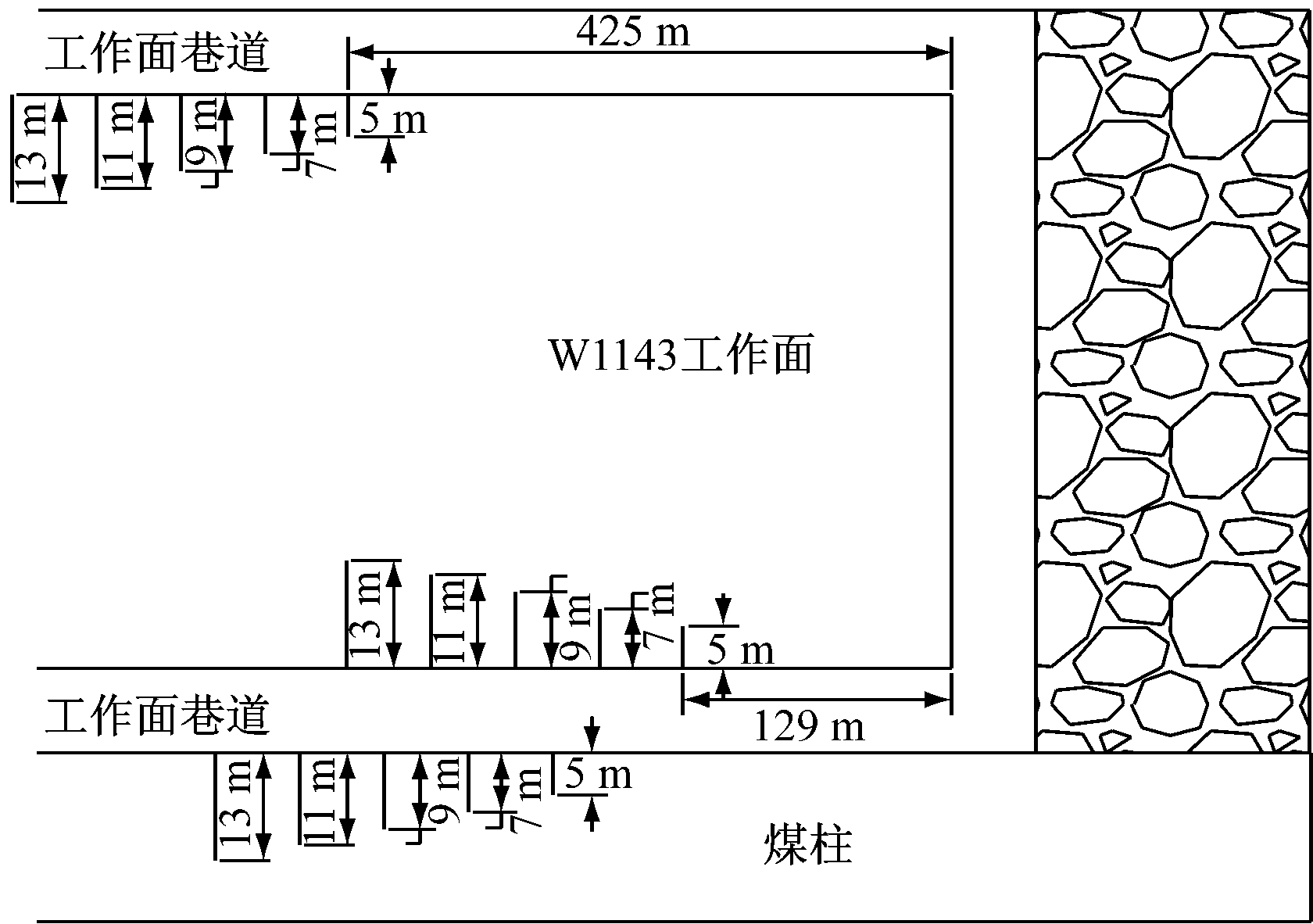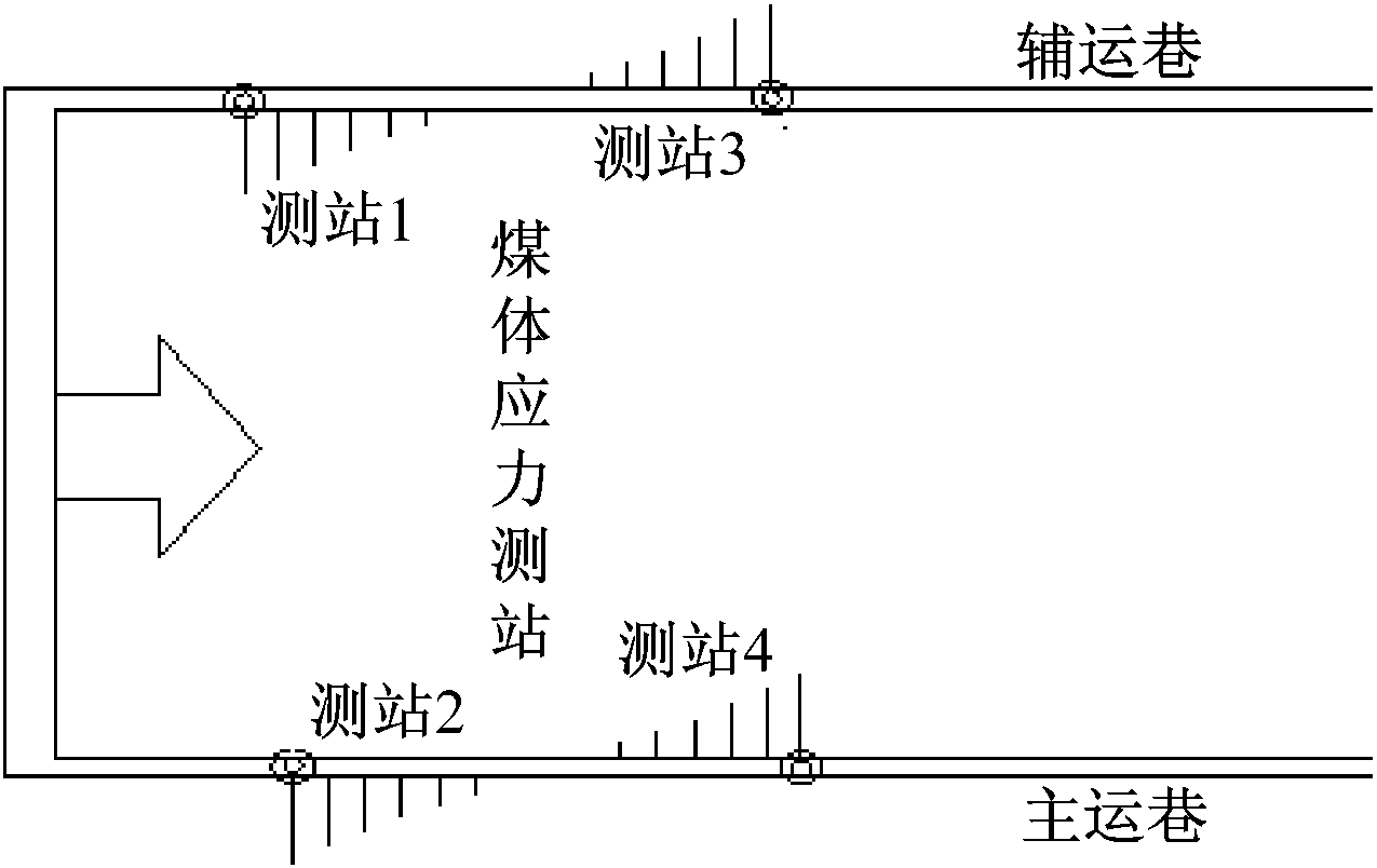 矿用钻孔应力计主要用于测量煤矿开采过程中的煤岩体应力(压力),一般布置在井下回采工作面的巷道(主运巷、辅运巷)里,如图4所示。