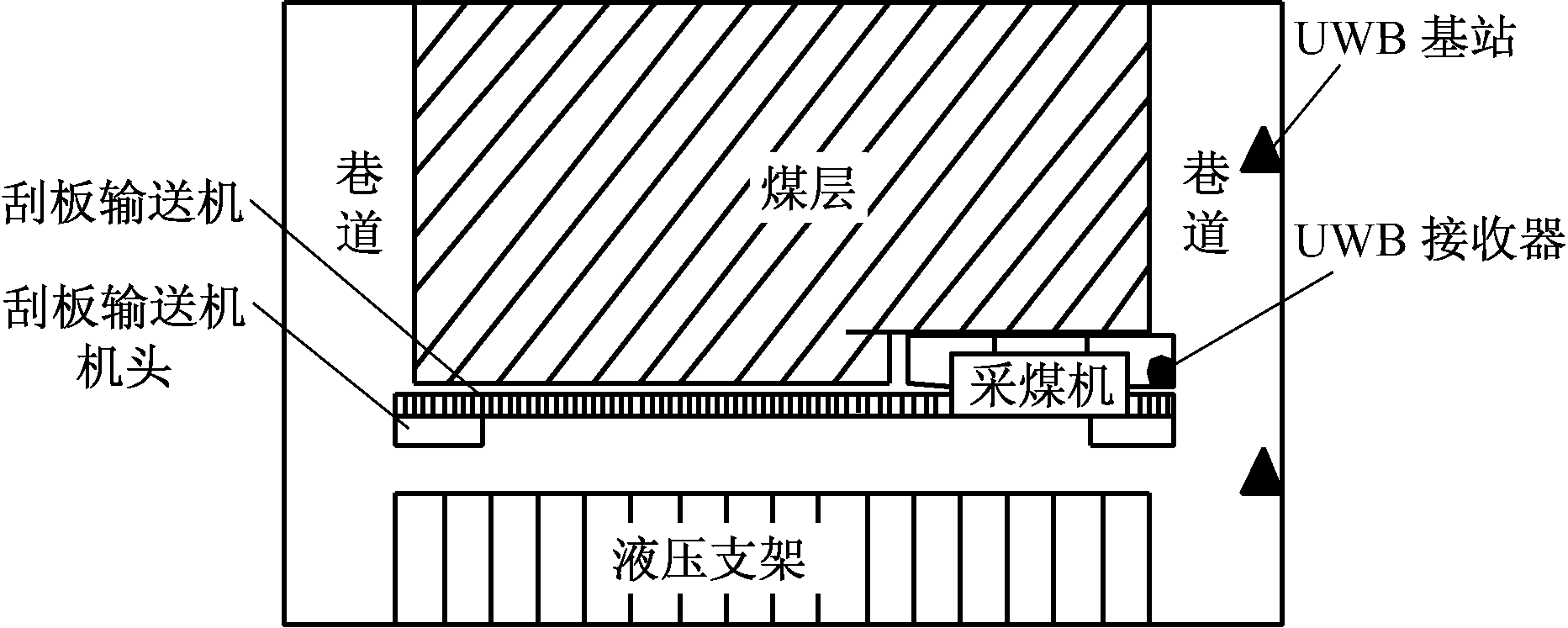UWB(Ultra Wide Band,超宽带无线通信技术)是利用脉冲信号进行高速无线数据传输的短程通信技术,其具有抗干扰能力强、抗多径及穿透性强等优点,早期被应用于近距离高速数据传输,近年来UWB脉冲信号被用来实现三维精确定位、雷达追踪等功能[1-2]。在矿井开采过程中,当采煤机在工作面工作时,使用惯性导航定位可以实现对采煤机实时位置的获取,然而由于单纯的惯性导航定位存在因累积误差不断增大而定位失准等问题,所以,需要采用一种技术在采煤机工作至刮板输送机机头位置时,对采煤机位置进行重新校准。当前煤矿井下常用的定位校准方式主要有红外、蓝牙、WiFi、ZigBee等,然而在井下对采煤机位置进行定位时应考虑到矿井的特殊性。红外定位容易受到煤矿井下遮挡物、粉尘、水分的影响而产生较大的误差;蓝牙技术尚未成熟,并不能完全应用在井下定位领域;而WiFi、ZigBee定位技术容易受到煤矿井下非视距传播、多址干扰及多径传播的影响,精度往往无法达到预定的要求[3-4]。因此,随着UWB技术的逐步成熟,同时考虑UWB抗干扰能力强、安全可靠等特点,可利用UWB技术建立采煤机定位系统,对采煤机位置进行校正,修正惯性导航定位的误差[5]。