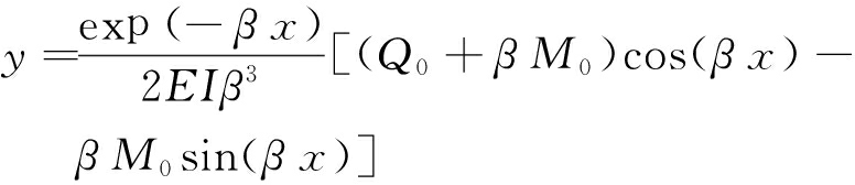 式中:β为特征系数,综合表征梁与地基弹性性质,影响梁的受力和变形特征