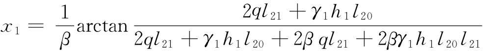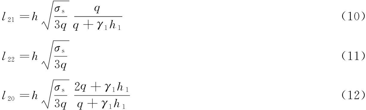 将Q0=ql+γ1h1l20/2,M0=ql2/2+γ1h1l20l/2代入式(4),并令l=l21,可求得老顶超前破断距为