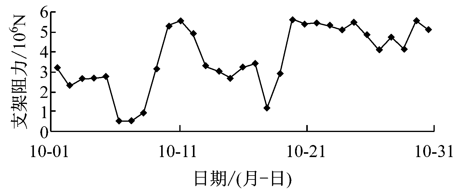 回采工作面支架是控制采场矿山压力的基本手段之一。支架的工作阻力是反映顶板运动、围岩控制效果的直观现象,其值受顶板条件、采煤方法、回采工艺及支架性能等的共同作用。在其他条件相同的情况下,支架工作阻力主要与顶板的破断和运移规律有关。