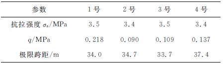 式中:h为老顶厚度;σs为老顶抗拉强度。