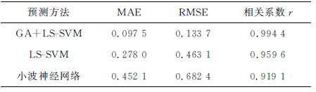 MAE和RMSE越小说明误差越小,预测结果越好;而r越大说明预测值与实际值越接近。3种预测方法的性能比较结果见表2。