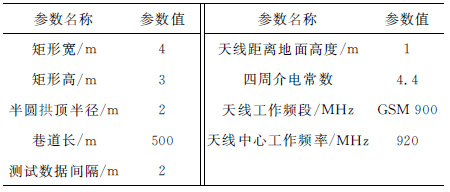 实验仿真数据由软件生成,巷道形状采用半圆拱形,截面示意如图2所示。将巷道看作不规则的长波导,巷道内部不填充任何介质,仿真参数设置见表1。