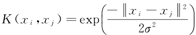 式中:xi,xj为训练输入样本;σ为径向基的宽度,为待定参数。