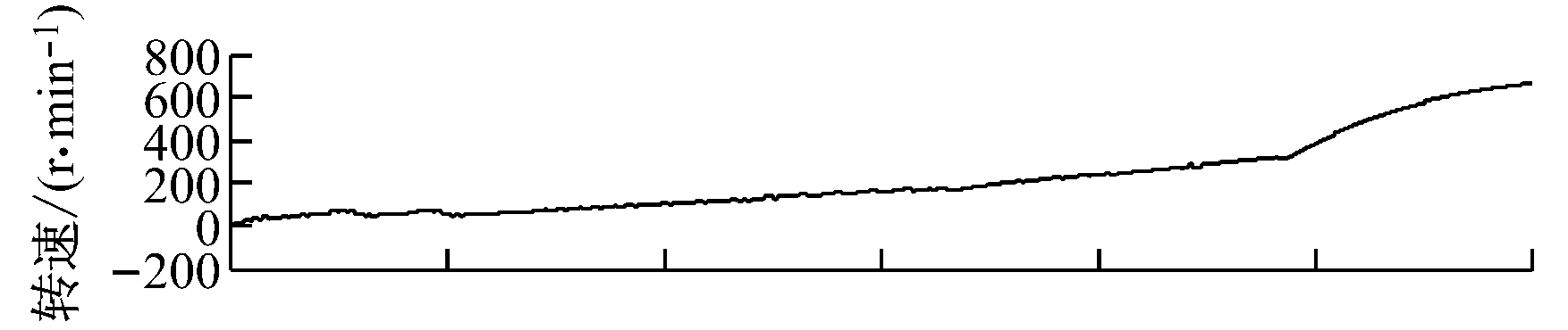 对比2种离散变频启动仿真波形(图8,图9)可以看出,当离散变频主调压电路采用普通晶闸管时,电动机的启动电流相对较小,但当由二分频向工频过渡时,电流波动较大,过渡不平滑[11],启动转矩较大,最大可达250 N·m,为传统软启动方式的5~6倍。而当采用全控型晶闸管GTO作为主调压电路时,电动机启动电流较小,稳定在-50~50 A,由二分频向工频过渡时,电流波动也较小,过渡非常平滑[12],同时间内电动机转速也相对较高,而且在0~0.5 s内启动转矩也明显增大,最大可达800 N·m,为普通晶闸管离散软启动时的2~3倍,软启动效果更加理想。