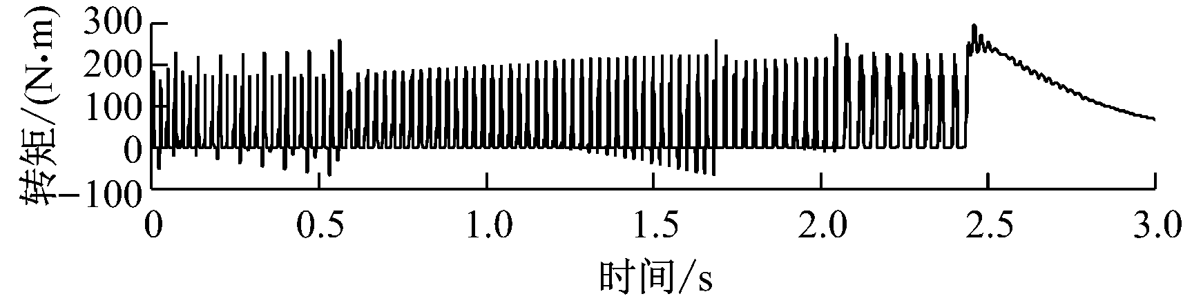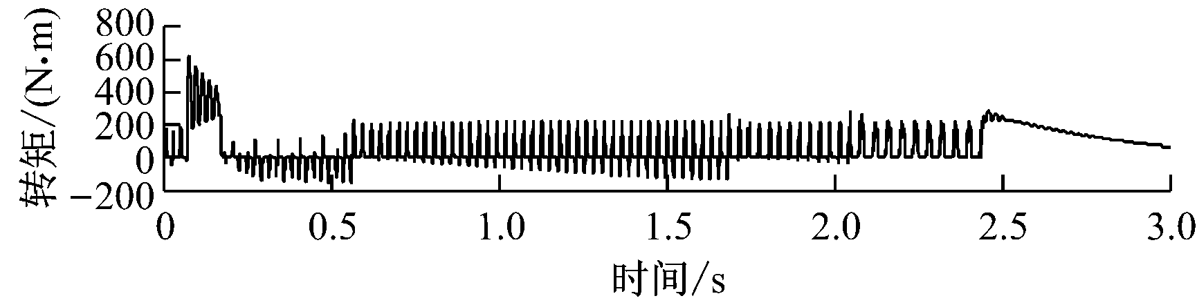 由图10可以看出,当保护电路选用三相断路器时,在0~0.5 s内,电流和转矩抖动比较剧烈,容易对电动机造成冲击。