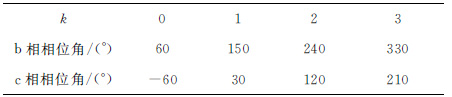 由式(7)可推导出各分频电压的初相角、相序及分频数与相序组合数的关系。当分频数为r时,相序组合数为(2r)2。以2分频为例,其相位角见表2。