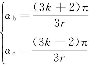 若分频后的电压为不对称电压,设其过零度角为αb,αc,则