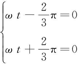 分频后的基波电压过零点与工频电压过零点相同,为其中2个过零点中的1个。设a相初相角为0,则对于b,c相有
