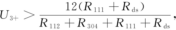 R301,R302分压使U3同相输入端电压U3+在式(5)、式(6)范围内,即可实现微功耗功能。