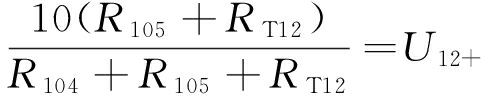 设U12同相输入端电压为U12+,则RT12阻值可由式(1)、式(2)得到。