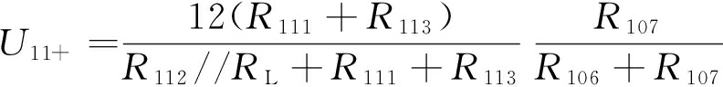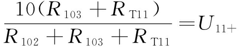 设U11同相输入端电压为U11+,则RT11阻值可由式(3)、式(4)得到。