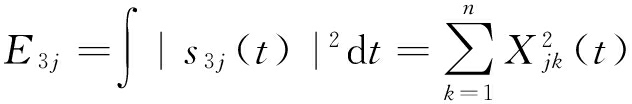 (2) 小波包重构。对各频段内的小波包重构可获得该频段内的时域波形,然后提取各频段内的重构函数系数Xjk(t)。各频带能量计算公式为